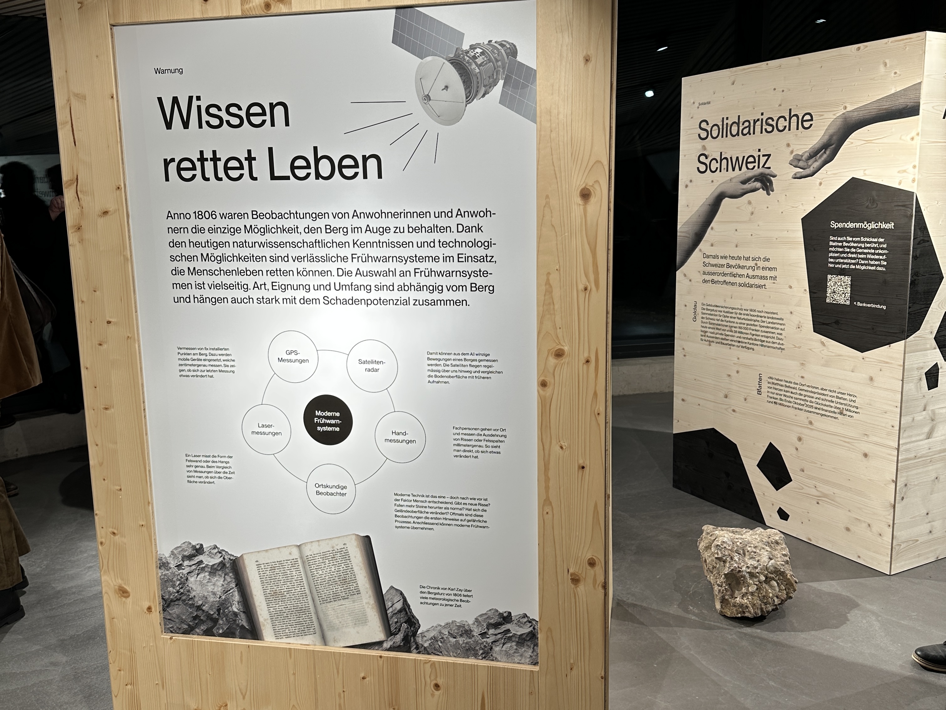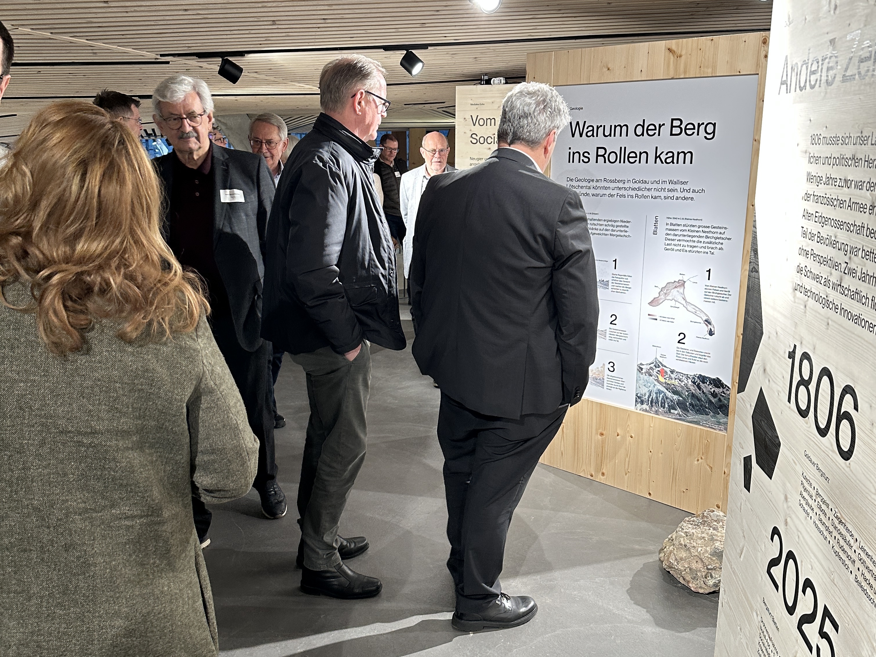 Regula Hürlimann-Simon, die Präsidentin der Stiftung Bergsturzmuseum, begrüsste über 60 Gäste zur Vernissage. Die Ausstellung thematisiert die beiden Jahrhundertereignisse – den Bergsturz von 1806 in Goldau und die Katastrophe von 2025 im Walliser Bergdorf Blatten – sachlich und eindrücklich zugleich. Sie lädt dazu ein, Parallelen zwischen damals und heute zu entdecken und die Ereignisse aus sechs verschiedenen Perspektiven zu erleben.